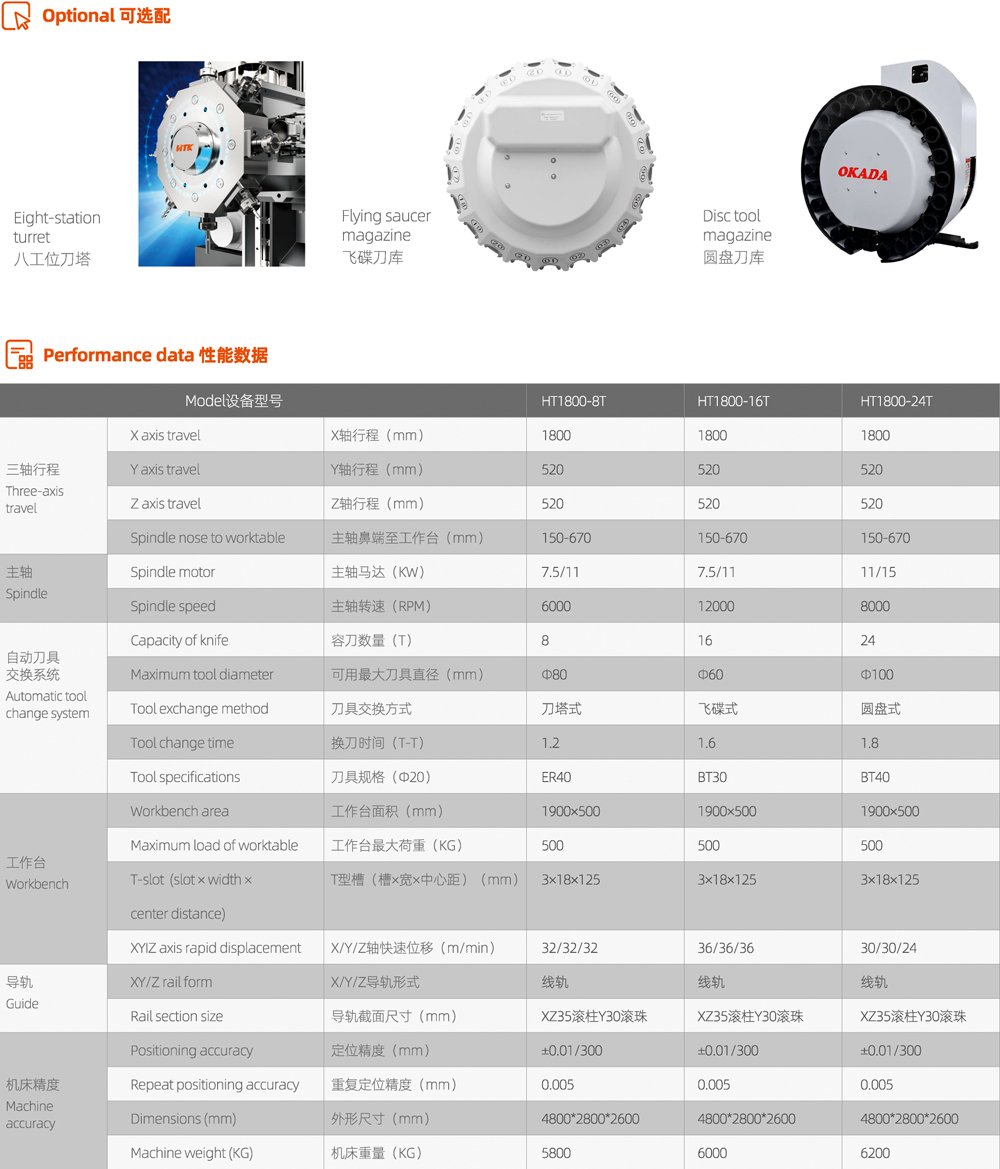 三軸36—48m/min,高速位移可節省非加工時間,大幅提高加工效率和保證加工光潔度。